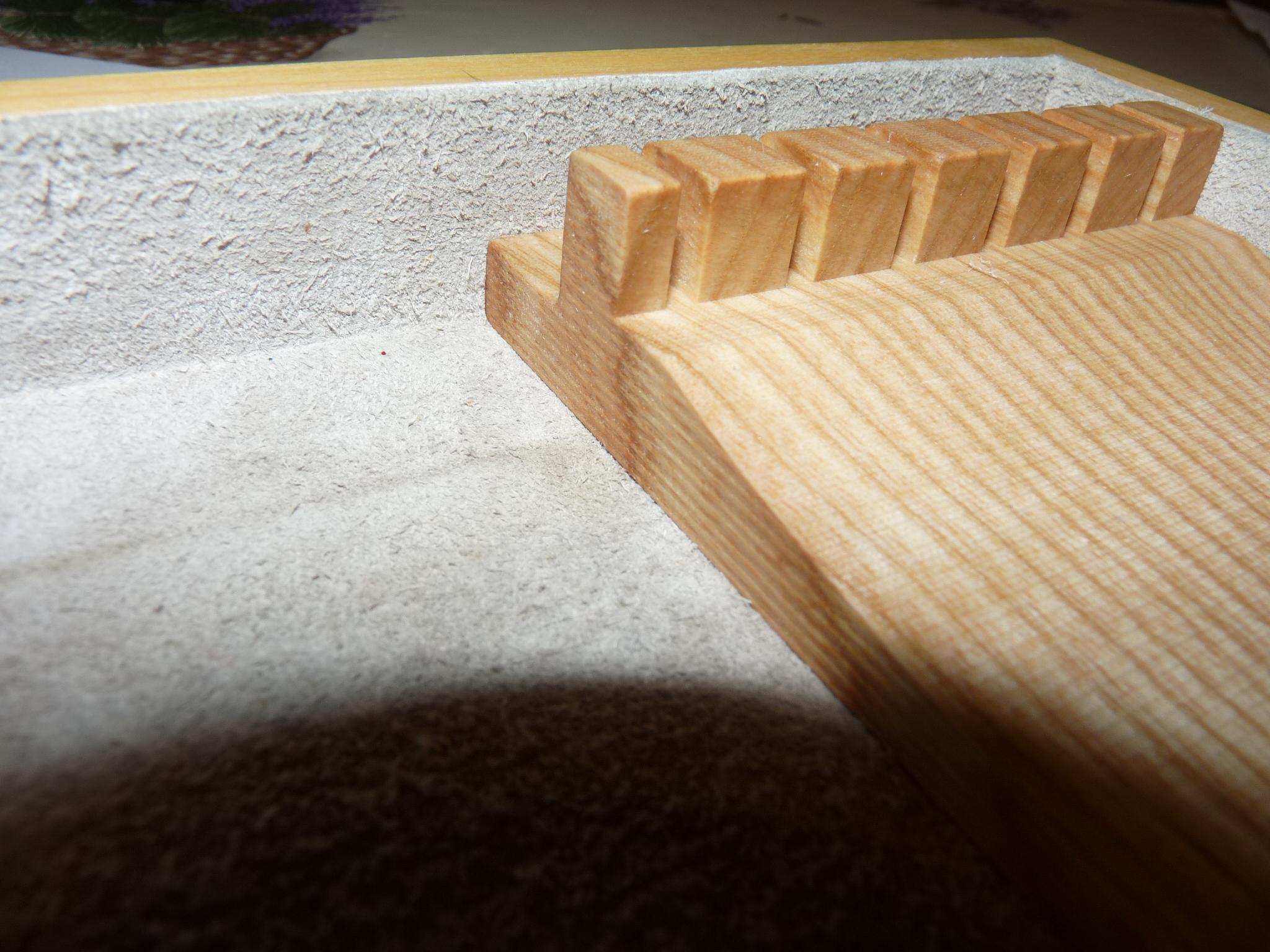 Попробовал сделать вкладыш из ясеня, в данном случае, для своей коробки, купленной в хобби-центре когда-то, кажется (на первом фото - то, что было "до того, как...").