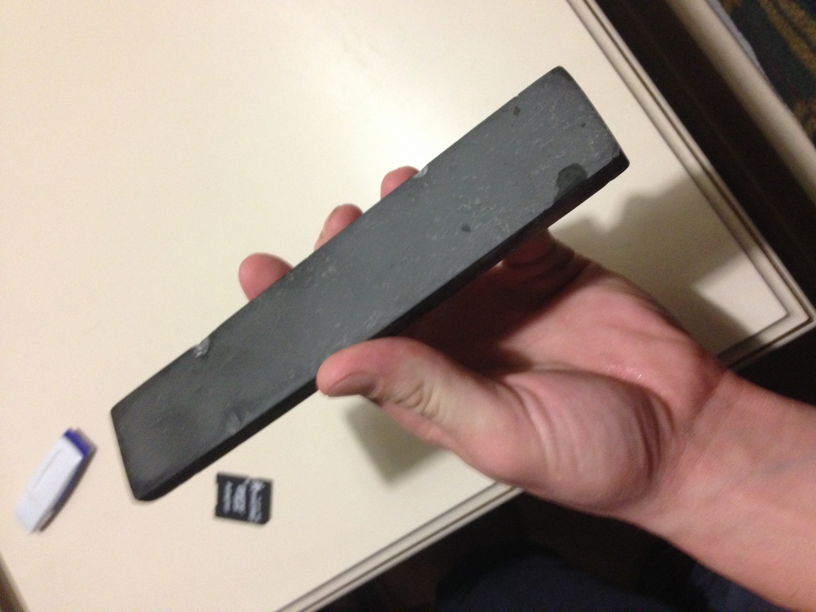 Любой заусенец может резать/строгать волос "со скрипом" на сведённой РК начиная с 1к Грит почти любого ножа, не то что бритвы... А так, если какой-то серый сланец (а наверное это так), то гритность где-то от 4кГ до 6кГ - это из безымянных, от прадедов, живщих на просторах Б. СССР. Ну если не эшер, канэчно. PS линейку что ли кинул бы в фото, раз лень было самому камень померять... а флешки они разные по длине, однако, есть - у тя какая по длине,?