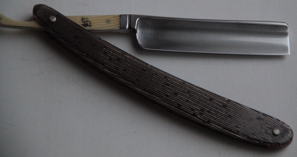 Бритва находится в очень хорошем состоянии. Следов активного пользования не заметил.Разобрал бритву, поменяв старые пины на новые и добавив внутренние шайбы и втулки. Родную ручку отполировал и придал её былой блеск. Полотно также немного освежил.Идеальная геометрия изготовления. Кромочка тоненькая и равномерна по всей длине полотна. Тяжёлая.Заточена и готова к бритью.