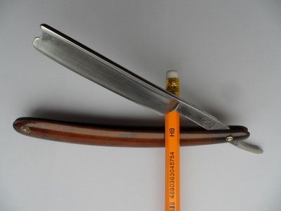 (там в серединке есть бритва с таким же "крестом") Ну и ручка - темноватое лакированное дерево, как у давыдовских артелей и промколхозов... P. S. Кость, не дерево. Ещё лучше.