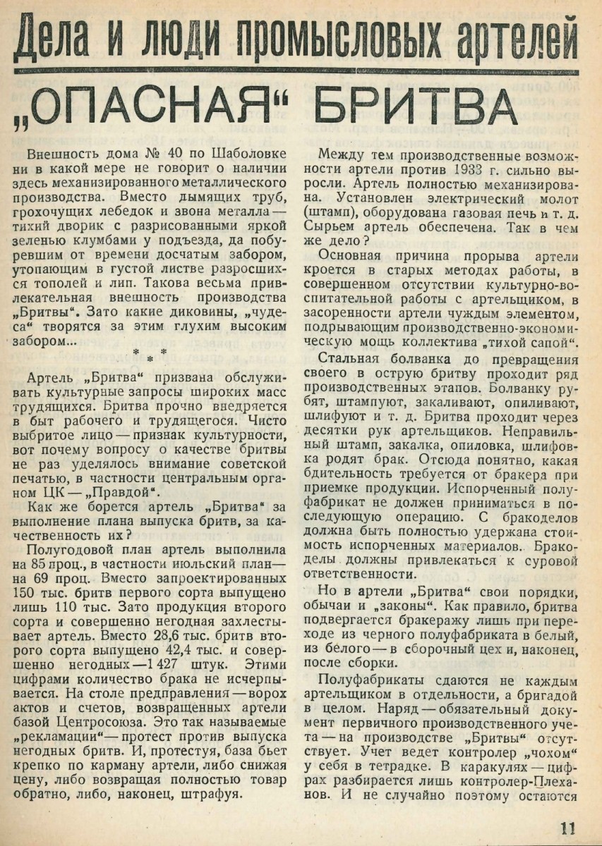 Посте того, как вскрылись недостатки в работе артели во время сравнения бритв с Мосштамповскими,