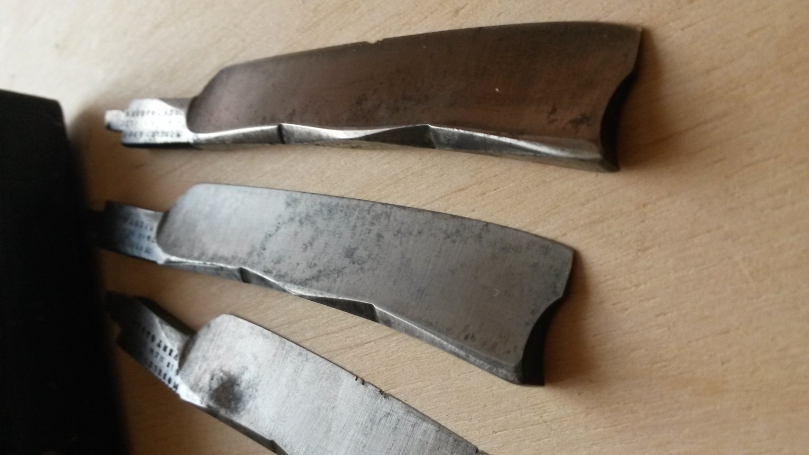 5, это точно, а возможно и 6 бритв совершенно непользованные были. Одна немного б.у., но тоже в прекрасном состоянии. Что удивительно, ручки из слоновой кости были все целы(за исключением одной),без трещин и сколов. Разобрал наборчик, немного освежил металл, где это было необходимо. В основном полотно не трогал, а почистил в районе осевого пина. И снова аккуратно собрал. За все время работы не расколол ни одной ручки, а ту ручку,что была с трещиной, хорошо проклеил с обеих сторон и отполировал. Коробочка из красного дерева также в отличном состоянии для своих лет. Пины двухцветные от нашего немецкого комрада Бабура. Короче, замечательный, редкий экземпляр.. Полюбуйтесь.. Добавлено спустя 40 секунд: Ещё фото... Всё будет ХОРОШО...тел:+79065827134