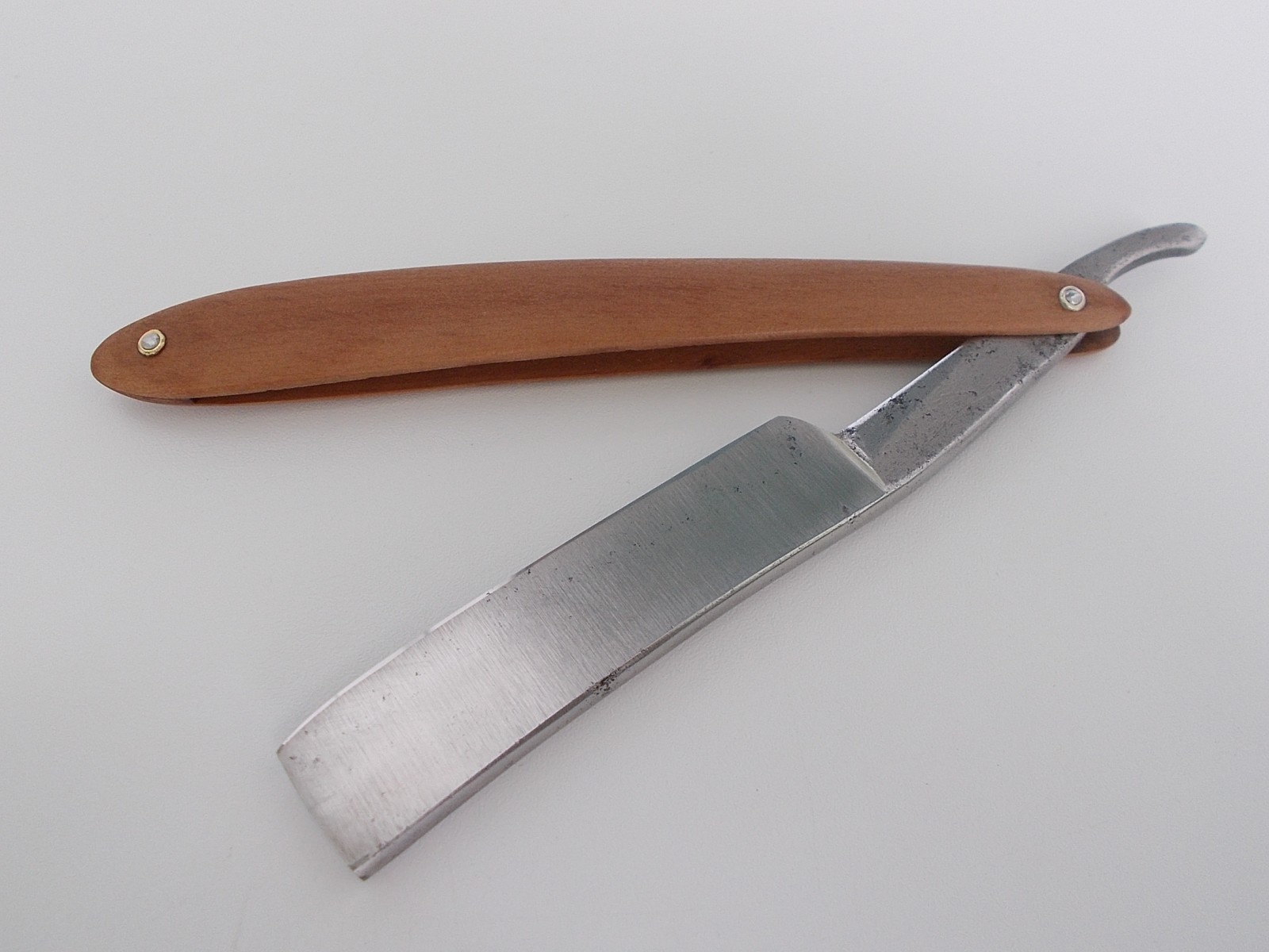 Материал плашек - дерево, груша. Клинышек - красное дерево. Пропитка - отбеленное льняное масло.Бритву купил без ручки. Делал по своему разумению, подглядывая на картинки из интернета Регринд бритвы от Сергея В. Еще раз большое спасибо Spoiler Show