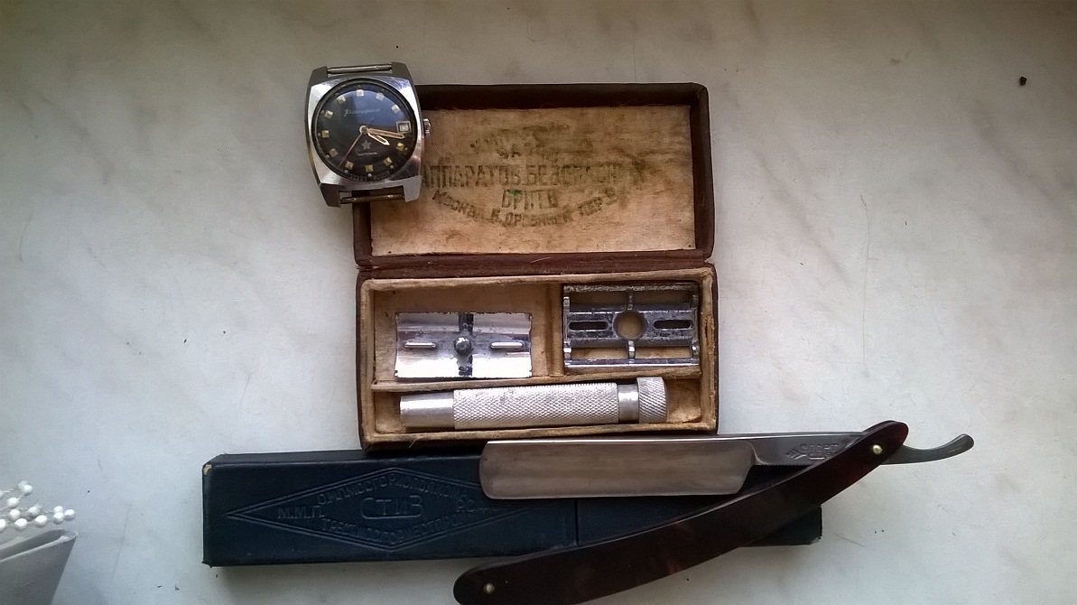 Re: Добыча с барахолкиПоследний поход на барахолку в этом году.... Ленинградская Т-шка с лезвиями Север ,купил скорее для коллекции чем для бритья....Ну и как обычно парочка нечастых часов за скромные деньги....