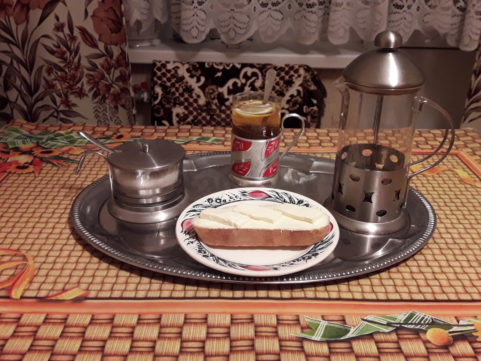 Завтрак- картофельное пюре; холодец, сваренный накануне на ночь из домашней курятины и свиной ножки; к нему хрен (опять-таки домашний, со свекольным соком); ну, и тарелка с консервированными овощами- соленые огурцы и маринованные помидорчики Волхвы не боятся могучих владык,