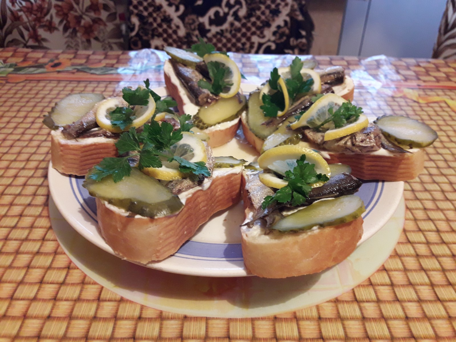 Добавлено спустя 5 минут 44 секунды: Обед: овощной суп с плавлеными сырками на первое. Хлебушек и соленый огурец для аппетита Добавлено спустя 6 минут 5 секунд: ... и тосты со шпротами и майонезом, украшенные ломтиками лимона и маринованного огурца, на второе Добавлено спустя 14 минут 13 секунд: На полдник- яблочко Добавлено спустя 4 минуты 41 секунду: На ужин- салат с крабовыми палочками, рисовый вариант Добавлено спустя 1 минуту 32 секунды: Ну, и вечерний чай. Черный, с лимоном Волхвы не боятся могучих владык,