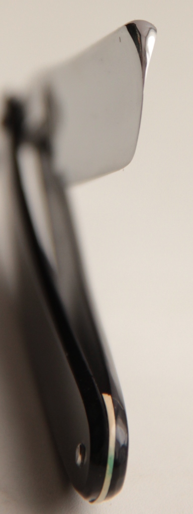 Бритва в пользовании не была, так как не наблюдается следов от заточных камней.Ничего с бритвой не делал, а только поменял осевой пин и добавил внутренние шайбы.Идеальная геометрия полотна.Сталь и кромка чистые. Будет отличным вариантом для новичка.Надёжная и удобная бритва .Заточена и готова к бритью.