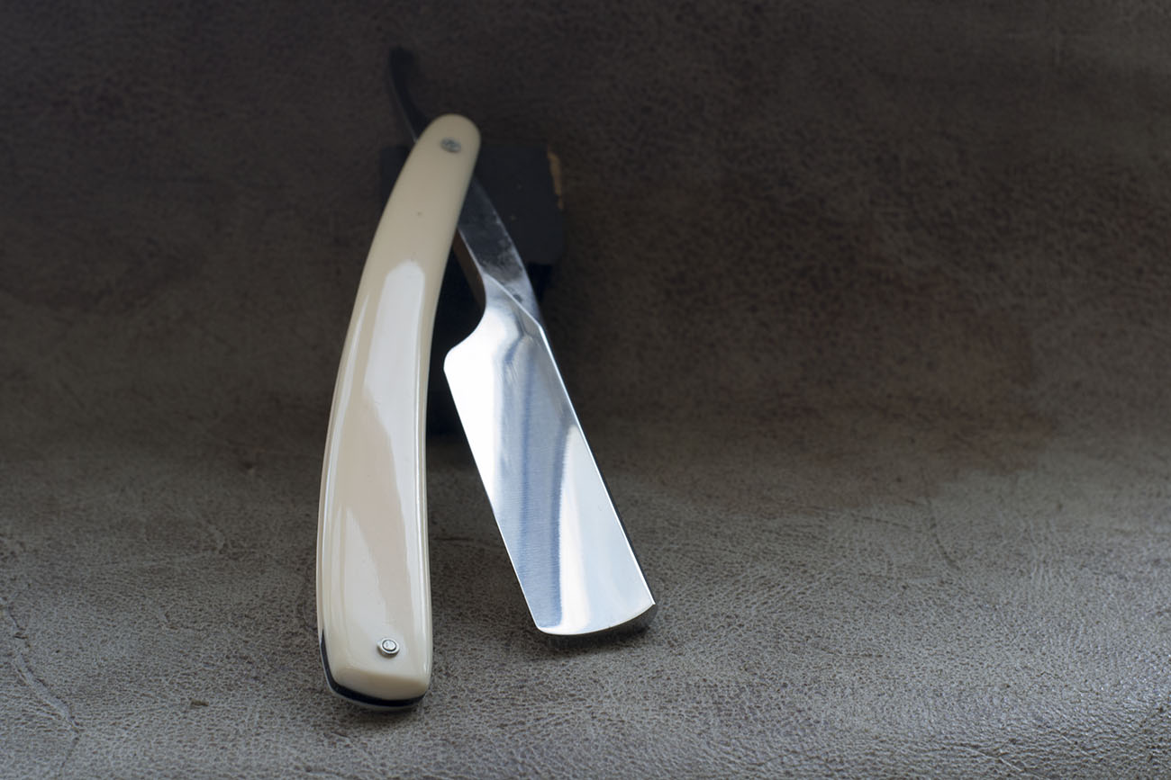 Опасная бритва, изготовленная из YSS – специальной стали Ясуки. Судя по всему бритва могла быть выполнена из стали aogami или shirogami (Голубая или белая стали соответственно) Бритва является качественным продуктом производства Японии середины 20 века, имеет отличную геометрию, ширину 6/8 и рукоять из желтого полупрозрачного пластика. Бритва заточена и готова к бритью, прекрасно подойдет новичку. Продано YSS Show
