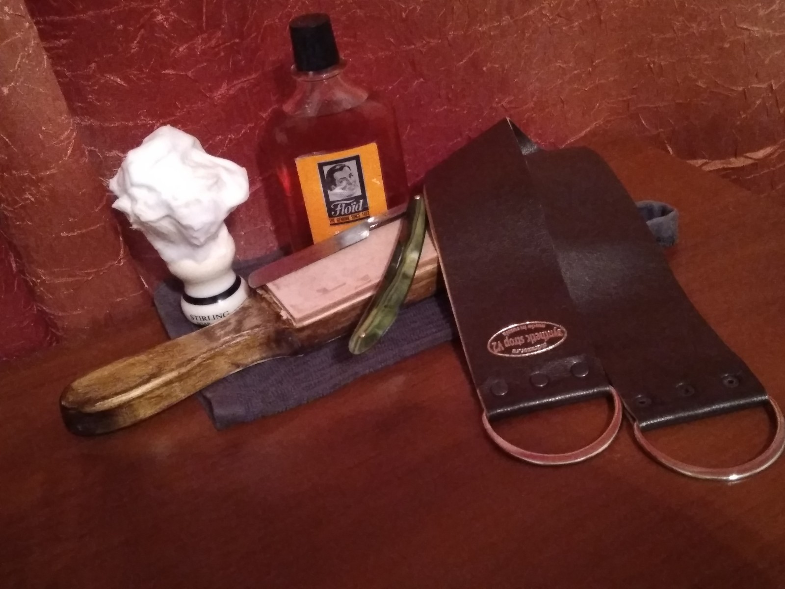Большое спасибо RuslanK за бритву СТИЗ "Москва" 51 год которую недавно приобрел. Бреет шикарно.  Из полоски кожи что шла с бритвой, сделал дощечку для доводки на пасте Опробую понятно дело позже, но кожа хорошая. Так же спасибо Каю за не менее классный ремень V 2 , а так же консультирование по вопросам бритья. Виновники торжества на фото.