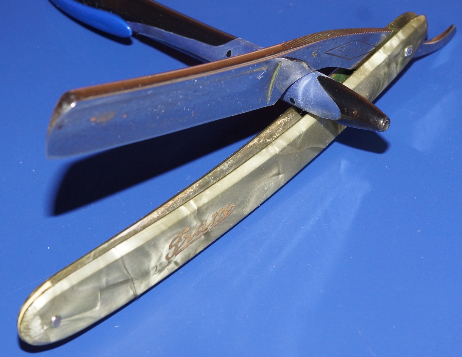 Переуточню! В теме Труд Вача на 36 странице в сообщении RuslanK на фото две бритвы. Нижняя 1932-1934, верхняя 1935-1936 (держал такую в руках, с точно известным месяцем покупки декабрь 1935). В этой теме футляр промежуточный, в дизайн 32-го в 34-ом влепили НКМП. Выходит 34-35.