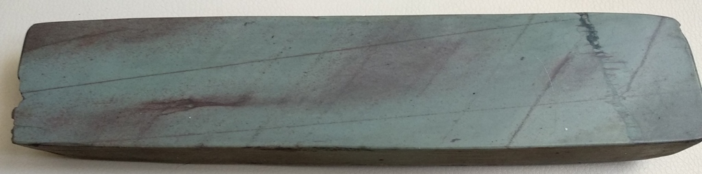 Тема по Чарнли Форестам тут https://forum.guns.ru/forummessage/224/1394002.html" onclick="window.open(this.href);return false; Размеры камня: 245х55х28 мм. Камень приехал из Великобритании плотно заклеенный в дубовый короб. Извлек из родной коробочки, отчистил от остатков масла и клея и использовал его или на весу, в руке, или на другой подставке. Сейчас,кто захочет, может снова вклеить в родной короб и так пользоваться. Коробочка, хоть и очень древняя, но целая.Нанесены какие то инициалы в виде букв RW. По сей видимости это есть автограф предыдущего собственника, пришедшего из далёкого прошлого. Несколько слов о самом камне. Камень твердый, просто так суспензию не выделяет, имеет плотную структуру, без трещин, пор, включений, прожилок и других дефектов, способных испортить кромку РИ. Очень красивый рисунок рабочей поверхности, с изумрудным отливом и красными разводами.Камень притерт и полностью готов к работе. Кроме доводки опасных бритв можно использовать и для других РИ. Читайте ветку по этому камню , покупайте и пользуйтесь на здоровье. В своё время камень был куплен за 120 английских фунта, с доставкой. В связи с этим, пусть и сейчас цена останется прежней, только в рублёвом эквиваленте, в размере 9500 р с доставкой.ПРОДАН Spoiler Show
