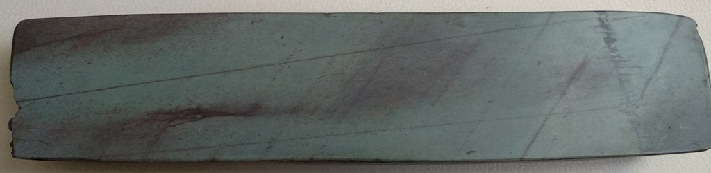 Тема по Чарнли Форестам тут https://forum.guns.ru/forummessage/224/1394002.html" onclick="window.open(this.href);return false; Размеры камня: 245х55х28 мм. Камень приехал из Великобритании плотно заклеенный в дубовый короб. Извлек из родной коробочки, отчистил от остатков масла и клея и использовал его или на весу, в руке, или на другой подставке. Сейчас,кто захочет, может снова вклеить в родной короб и так пользоваться. Коробочка, хоть и очень древняя, но целая.Нанесены какие то инициалы в виде букв RW. По сей видимости это есть автограф предыдущего собственника, пришедшего из далёкого прошлого. Несколько слов о самом камне. Камень твердый, просто так суспензию не выделяет, имеет плотную структуру, без трещин, пор, включений, прожилок и других дефектов, способных испортить кромку РИ. Очень красивый рисунок рабочей поверхности, с изумрудным отливом и красными разводами.Камень притерт и полностью готов к работе. Кроме доводки опасных бритв можно использовать и для других РИ. Читайте ветку по этому камню , покупайте и пользуйтесь на здоровье. В своё время камень был куплен за 120 английских фунта, с доставкой. В связи с этим, пусть и сейчас цена останется прежней, только в рублёвом эквиваленте, в размере 9500 р с доставкой.ПРОДАН Spoiler Show