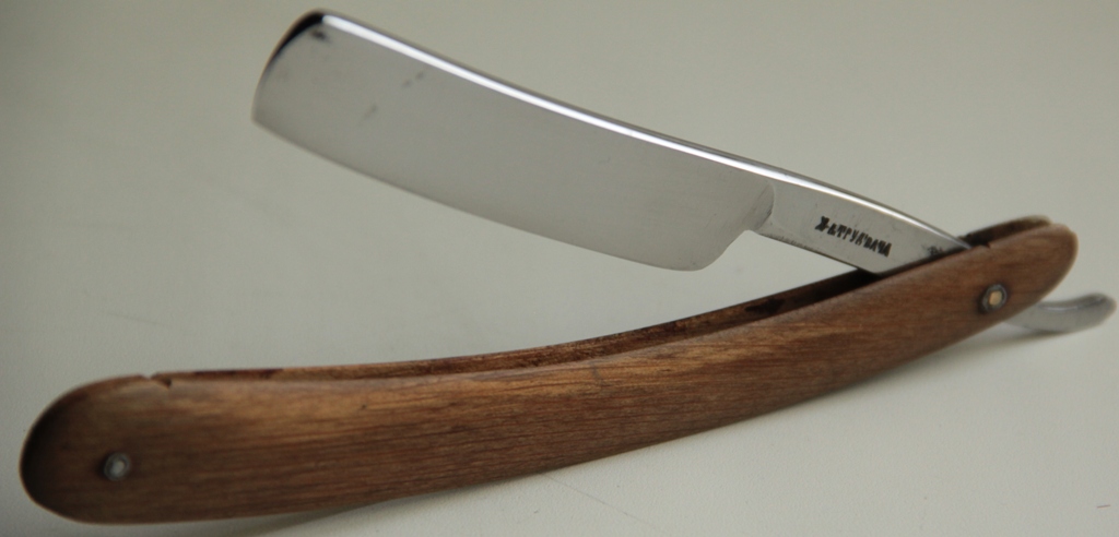 Ширина полотна-20 мм Толщина обушка-6мм Полная вогнутость. Кованая углеродистая сталь. Начало 20-го века. По всей вероятности была произведена в Германии для французской фирмы. Как по мне, так очень красивая бритва, с прекрасной "звенящей" кованой сталью.Тяжёлая, мощная, удобная и самое то, что нужно новичку,в качестве первой , стартовой бритвы.Бритва совсем немного б.у., но эксплуатировалась и точилась аккуратно.Бритву разобрал, немного почистил полотно и снова собрал, добавив внутренние шайбы и втулки. Оригинальная оправа полностью цела,без трещин ,царапин или других дефектов.Сталь и кромка чистые. Идеальная геометрия изготовления. Настоящее франко-немецкое качество в действии!! Не пропустите очень практичную, эффектную и недорогую бритву из прошлого... ) Заточена и готова к бритью. Цена-6500 р с доставкой.ПРОДАН Внимание! Важная информация! Spoiler Show