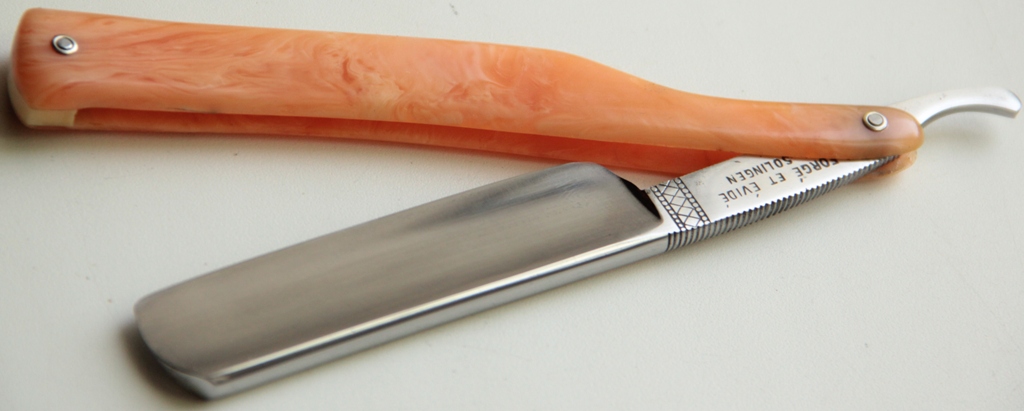 Ширина полотна-20.5 мм Толщина обушка-5.2 мм Полная вогнутость. Углеродистая сталь. Середина 20-го века. Бритва в очень хорошем состоянии,с минимальными следами использования.Не разбиралась. Только немного почистил полотно от древней патины. Сталь и кромка чистые, без проблем.Красивая, трех-пиновая пластиковая оправа.Заточена и готова к бритью.Будет неплохим вариантом для новичка. Цена-4800 р с доставкой.ПРОДАН Spoiler Show