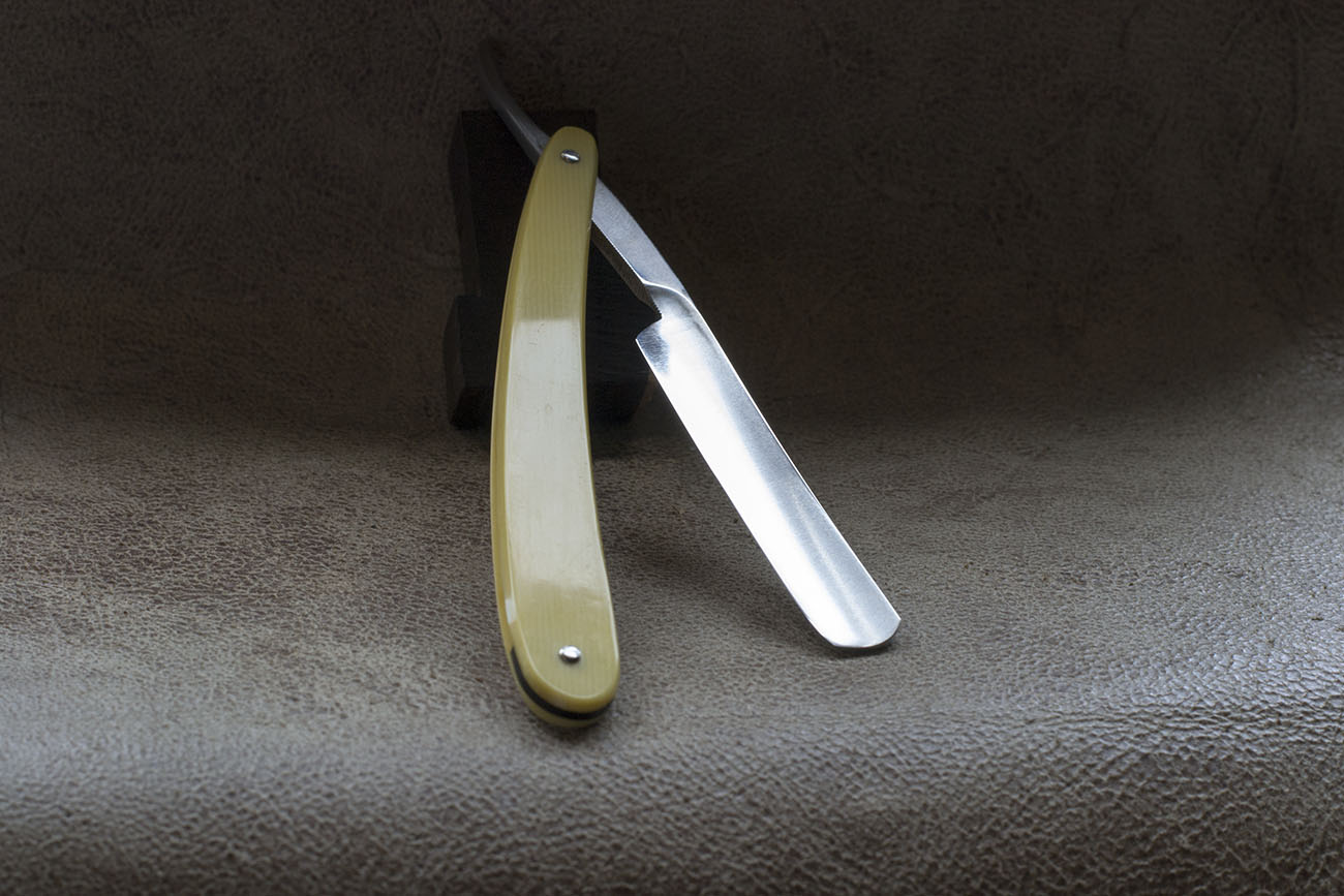 Немецкая опасная бритва, изготовленная для рынка США. The Commander довольно редкая марка, по крайней мере, я встречаю ее впервые. Ширина полотна 16 мм (5/8), спинка - 4.3 мм., рукоять изготовлена из эбонита. Кроме того стоит обратить внимание на закругленный эрль бочонком, что является не частым решением, обычно во избежание закусывания при закрывании на эрле снимаются фаски. Бритва изготовлена из качественной углеродистой стали, имеет хорошую геометрию – фаска режущей кромки тонкая и равномерная. Отличное решение для новичка. Продано The Commander Show