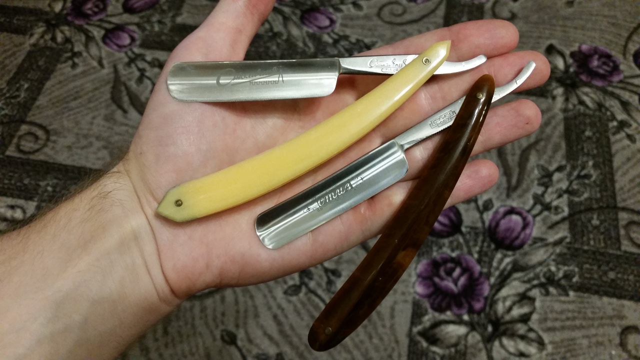 Коробочки выпускались двух видов. Дорогая, подарочная, только для бритвы "Москва" и обычный пенал для всех остальных.