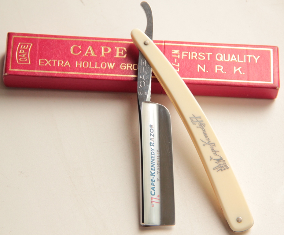 Непользованная японская бритва CAPE-KENNEDY RAZOR "77" Ширина полотна-21.5 мм Толщина обушка-6.5 мм Шведская углеродистая сталь. Экстра полная вогнутость. Год изготовления-1971 Фирма-производитель Nichiri Co., Токио Япония . 'Nichiri' первоначально был магазином для бритья, основанным в 1885 году в Осаке, и были одним из первых японских магазинов, которые продавали западные бритвенные товары. Они 'сделали' или, лучше сказать, продали / распределяли бритвы под разными товарными знаками: Данная бритва была произведена в сотрудничестве с известным японским мастером опасных бритв-Tanifuji Fukutarō. (登録 商標 = tōroku shōhyō = зарегистрированный товарный знак, 谷 藤 = Tanifuji, 福 太郎 = Fukutarō Бритва CAPE-TANIFUJI, под индексом NF-77, из ограниченной партии, была изготовлена мистером Танифуджи в 1971 году на свой 77 летний юбилей. Как я ранее написал, бритва очень редкая, тем более с таком нетронутом состоянии. Будет жемчужиной в любой коллекции, самого безбашенного рейзор маньяка. Бритва находится в исключительном состоянии, без каких либо внешних дефектов.Только оттер от масла.Естественно, ничего не разбиралось и не ремонтировалось. Все в оригинале+ нетронутая временем картонная коробочка.Сталь и кромочка без дефектов. Идеальная геометрия изготовления. Кромочка равномерна по всей длине и еле заметна.Заводскую заточку пока не трогал, так что бритва не готова к бритью, но после покупки, по желанию клиента произведу все подготовительные работы. Не пропустите достойный во всех отношениях экземпляр. Цена-25500 р Внимание! Важная информация! Spoiler Show