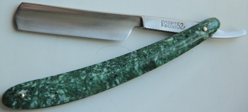 .Советская опасная бритва "сталинских" времен: Стиз "СПОРТ"1952 года выпуска. Ширина полотна-17 мм. Толщина обушка-4.5 мм Полная вогнутость. Углеродистая сталь. Следов пользования не замечено. Бритва находится в идеальном состоянии. Немного освежил полотно от патины, не разбирая родную ручку и пины. Трещинка снизу ручки была аккуратно заклеена и отполирована. Практически незаметно.Сталь и кромка чистые, идеальная геометрия изготовления. Прекрасное и мягкое бритье.Заточена и готова к бритью. К сожалению, родная коробочка не сохранилась. Цена-3500 р с доставкой.ПРОДАН Не пропустите отличный экземпляр того времени, когда за качество изделий приходилось отвечать очень многим.. Внимание! Важная информация! Spoiler Show
