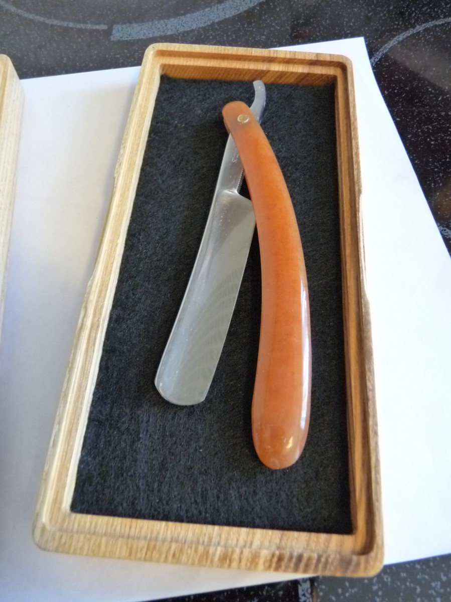Рельеф бритвы на крышке футляра - уже не раз тут мной был показан - мой "типовой" рельеф.