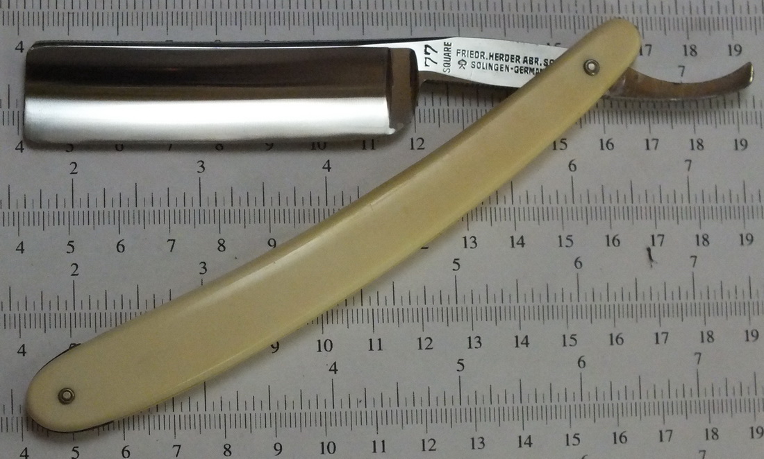 F. Herder Abr. Sohn N°172, 6/8. Досталась много лет назад на барахолке в грустном состоянии с побитой целлулоидной рукояткой наихудше возможного золингеновского дизайна.