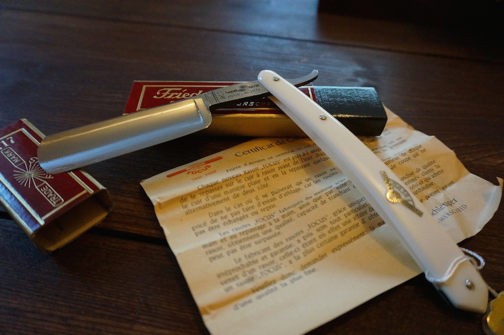 ИЛИ частично восстановленную мной бритву (черная ручка). Требует заточки.