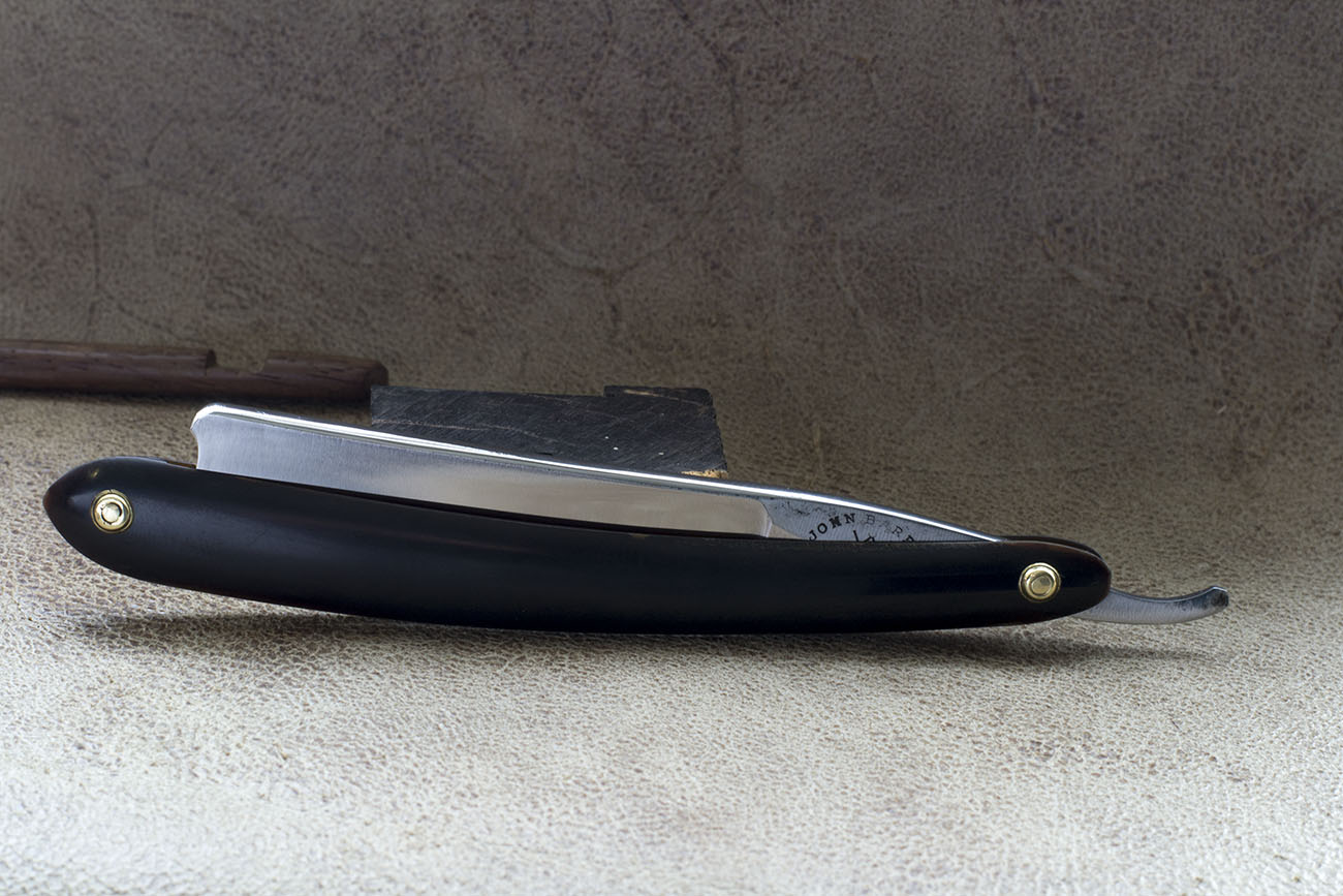 Старый английский клин, выпущенный до 1834 года, после этой даты, компания стала называться John Barber & Sons. Ширина полотна 6/8 (19 мм.) Фаска режущей кромки равномерная и тонкая по всей длине, что свидетельствует о прекрасной геометрии полотна. Родная роговая рукоять. Бритва послужит прекрасным дополнением любой коллекции, так как бритвы от Джона Барбера встречаются довольно редко, тем более редки экземпляры, сохранившие хорошую геометрию и практически без следов времени. Кроме того данная бритва прекрасно подойдет как инструмент для частого использования, удобный размер и легкая улыбка делают подобные старые клины крайне привлекательными для частого использования. Бритва заточена и готова к бритью. Продано Barber Show
