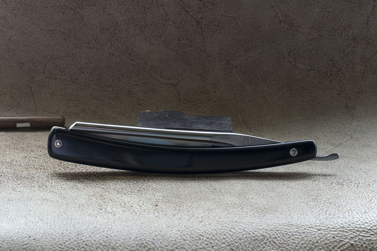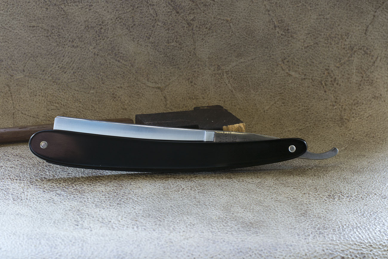 Опасная бритва от знаменитого шеффилдского производителя George Wostenholm & Sons марки IXL. Марка IXL принадлежала семье с середины 1830-х, а фабрика Washington Works с конца 50-х, судя по форме клинка и вогнутости бритвы в ¾ рискну предположить, что бритва была изготовлена в 60-х годах 19 века. Клинок имеет отличную геометрию, полотно плавно расширяется к носику и максимальная ширина достигает 22 мм. (7/8), спинка в самом широком месте имеет ширину в 6 мм, создавая оптимальный угол заточки на протяжении всей режущей кромки. Бритва получила новую рукоять из кости буйвола. Заточена и готова к бритью. Отличный выбор для коллекционеров. Продано Wostenholm Show