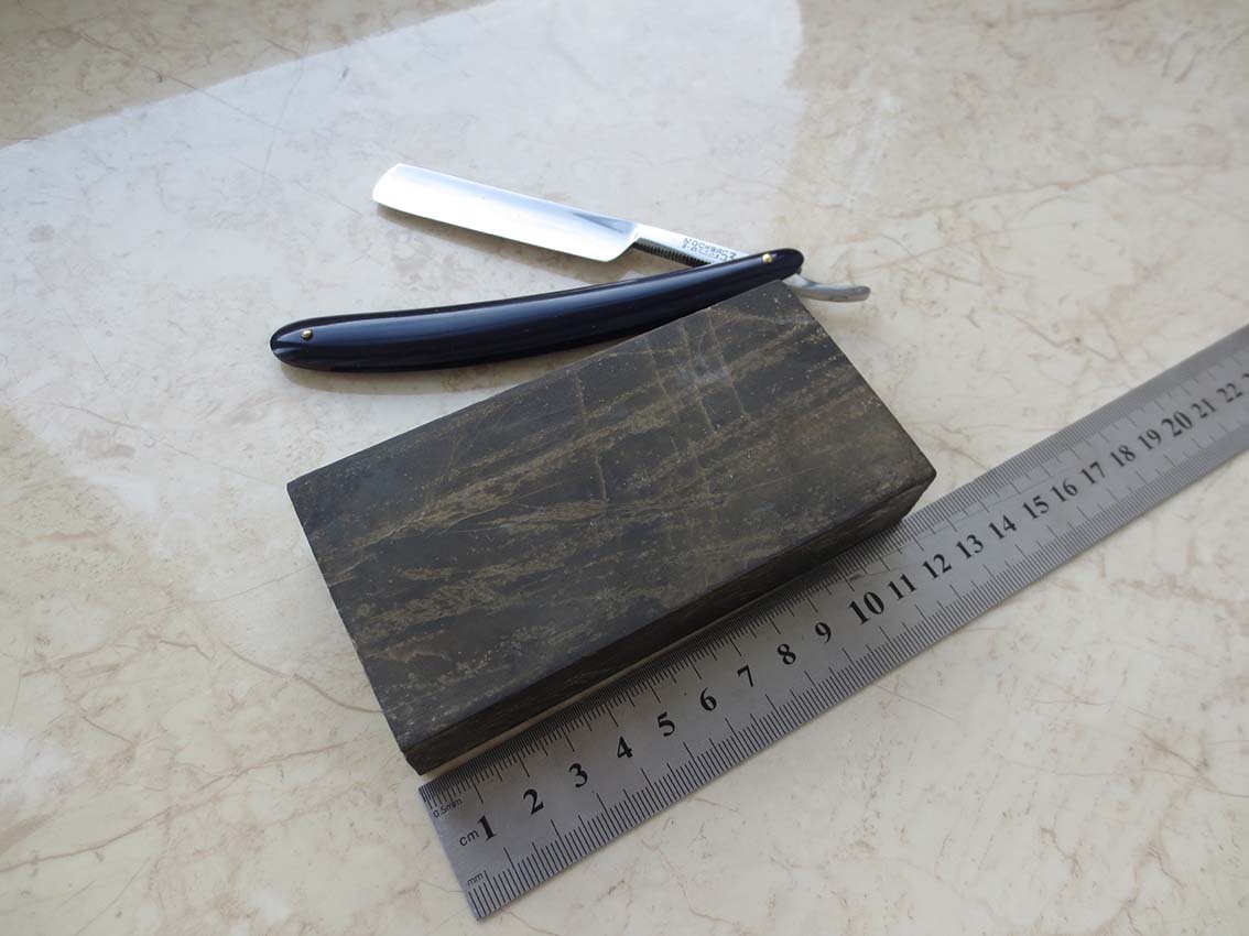 Не пользованный, даже не притёрт. Формат парикмахерский 12 х 6 см. Не ожидал, что у нас можно встретить такое на обычной блошке. Не дешёво правда, но считаю своих денег стоит. Думаю ведущие камневоды и камневеды определят породу и ценность данного камня на раз два с первого взгляда...) Бесит, когда приходится пользоваться бритвой моложе себя...