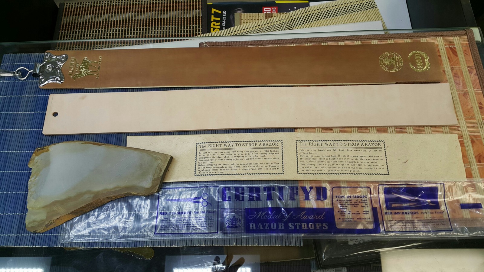 Уважаемые джентльмены, помогите пожалуйста определить камень для правки бритв и ремни, и их приблизительную стоимость. Итак, есть такой комплект - два ремня для правки, один предположительно американский, второй японский, и отполированный с одной стороны камень без опознавательных знаков и маркировок, . Размеры камня: длинна - 200 мм, ширина(наибольшая) 130 мм, ширина (наименьшая) - 70 мм, высота - 16 мм, вес - 555 г. В бритвенной тематике я совершенно не разбираюсь, поэтому прошу помощи специалистов. Спасибо.