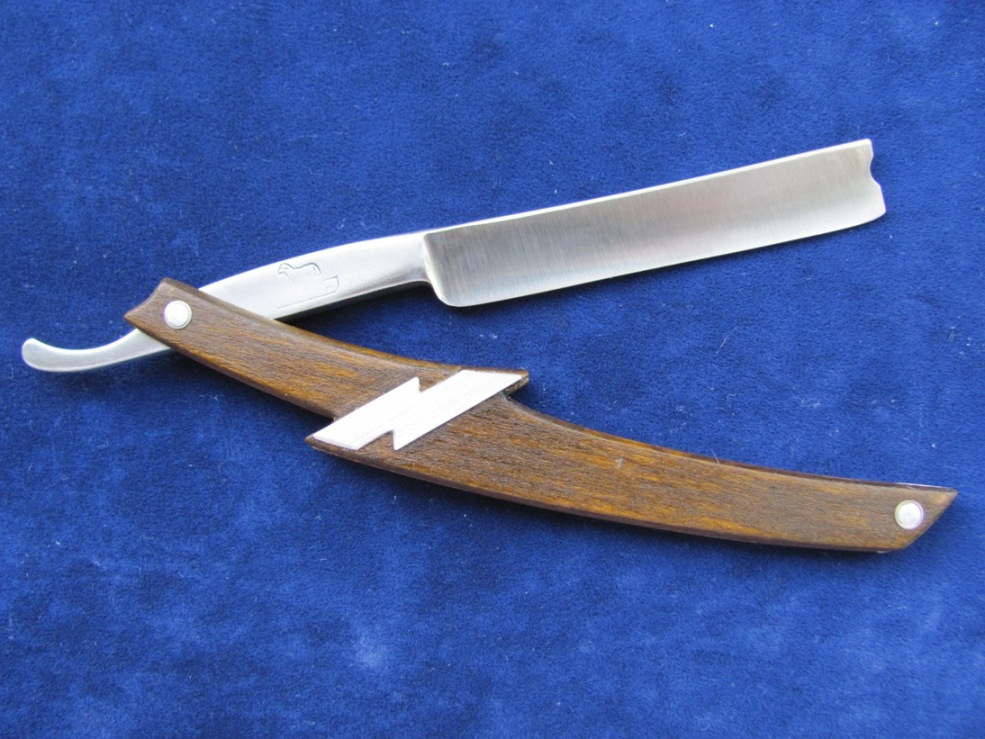 Re: Ремонт ручкиРанее выкладывал фото сменных клинков "Joseph Rodgers&Sons", Sheffield. Ручку с держателем к ним найти не срослось. Попробовал сделать сам из латуни и дерева. Вот результат. Как изготовить правильный механизм держателя вроде бы догадался (да и Егор подсказал), но так как я не ювелир, то нашел выход попроще, в итоге клинок сидит плотно, не гуляет.