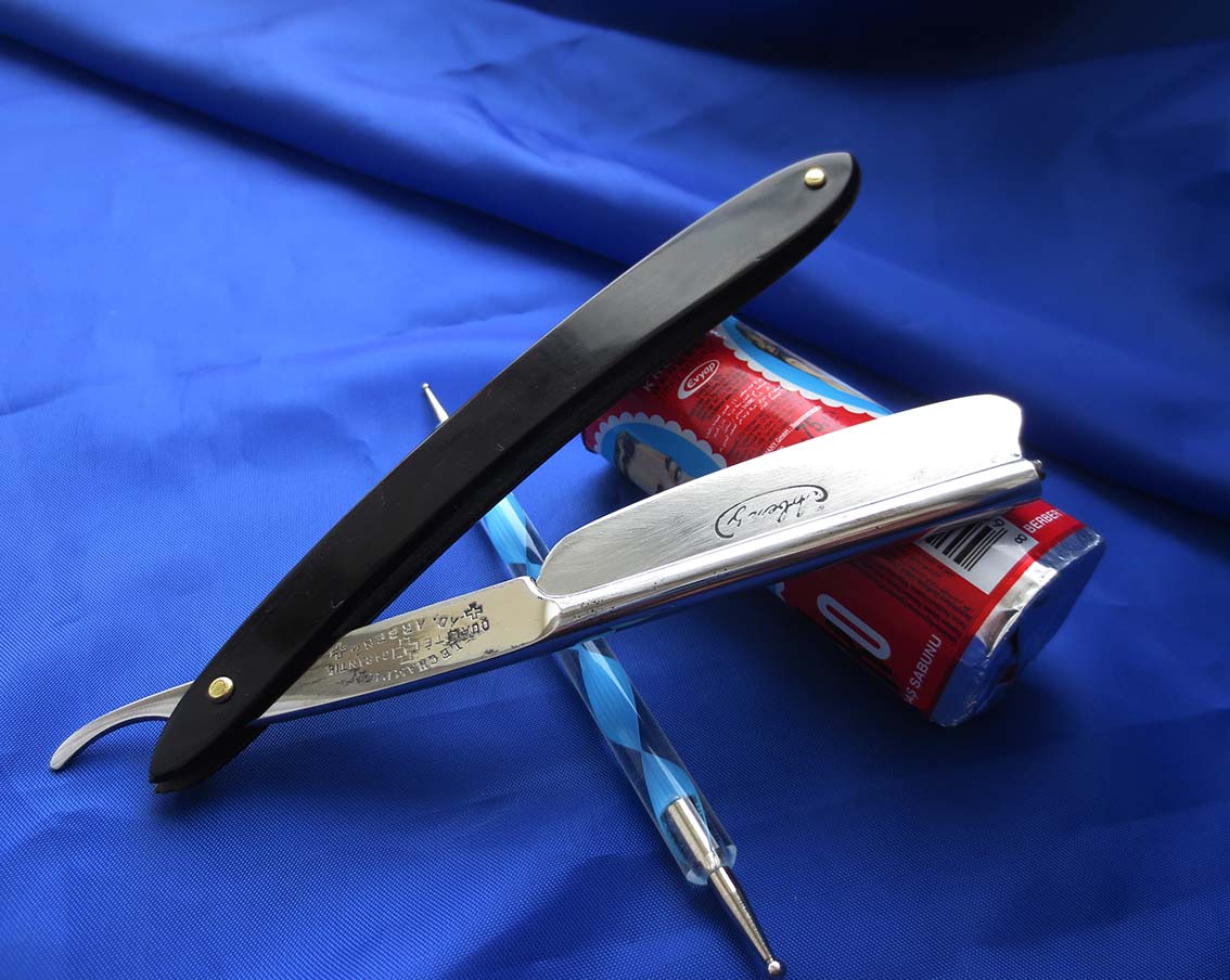 Extra Hollow Ground Silver Steel Best Quality Atlantic Cutlery Co. Made in Germany Лезвие сделано из высокоуглеродистой стали-серебрянки, ширина клинка - 13/16 дюйма (21мм), новая ручка из красного дерева Венге Сиам, (древесина Венге тяжёлая, устойчива к давлению и изгибу, очень прочная и плотная), клинышек из рога водяного буйвола, пины и шайбы - латунь. Инструмент находится в отличном состоянии и точился мною впервые. Очень красивая и приятная бритва, как в подарок, так и для себя любимого... К бритве прилагаю чехол для её хранения из натуральной кожи ручной работы. Также всегда есть в наличии ремни для правки, при покупке бритвы и ремня доставка по России за мой счёт. Цена - 10000 рублей. HR Show Бесит, когда приходится пользоваться бритвой моложе себя...