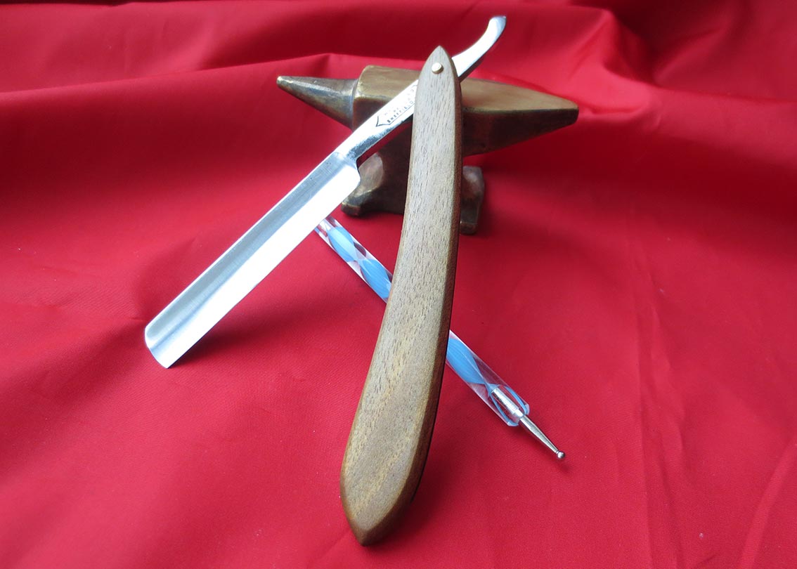 Extra Hollow Ground Silver Steel Best Quality Atlantic Cutlery Co. Made in Germany Лезвие сделано из высокоуглеродистой стали-серебрянки, ширина клинка - 13/16 дюйма (21мм), новая ручка из красного дерева Венге Сиам, (древесина Венге тяжёлая, устойчива к давлению и изгибу, очень прочная и плотная), клинышек из рога водяного буйвола, пины и шайбы - латунь. Инструмент находится в отличном состоянии и точился мною впервые. Очень красивая и приятная бритва, как в подарок, так и для себя любимого... К бритве прилагаю чехол для её хранения из натуральной кожи ручной работы. Также всегда есть в наличии ремни для правки, при покупке бритвы и ремня доставка по России за мой счёт. Цена - 10000 рублей. HR Show Бесит, когда приходится пользоваться бритвой моложе себя...