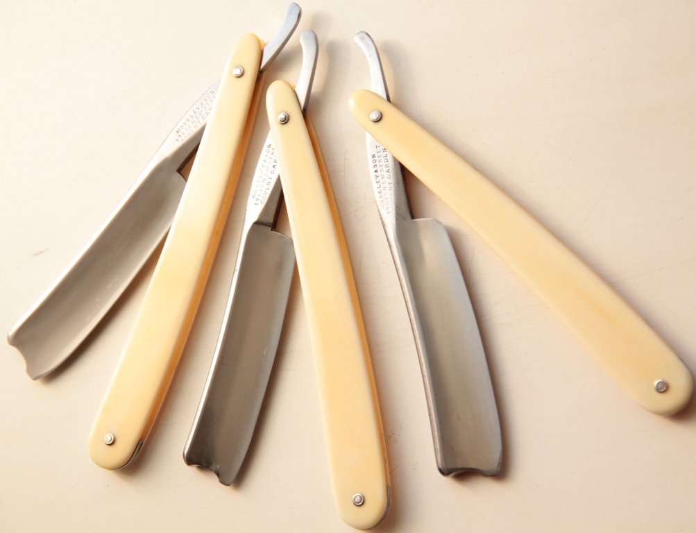 Бритвы очень красивые и находятся в прекрасном состоянии.В пользовании не были. Пришлось разобрать, поставить нормальные пины и немного освежить металл от старинной патины.Сталь и кромка чистые, без каких либо "следов времени". Идеальная геометрия полотен.Кромочка равномерна по всей длине.
