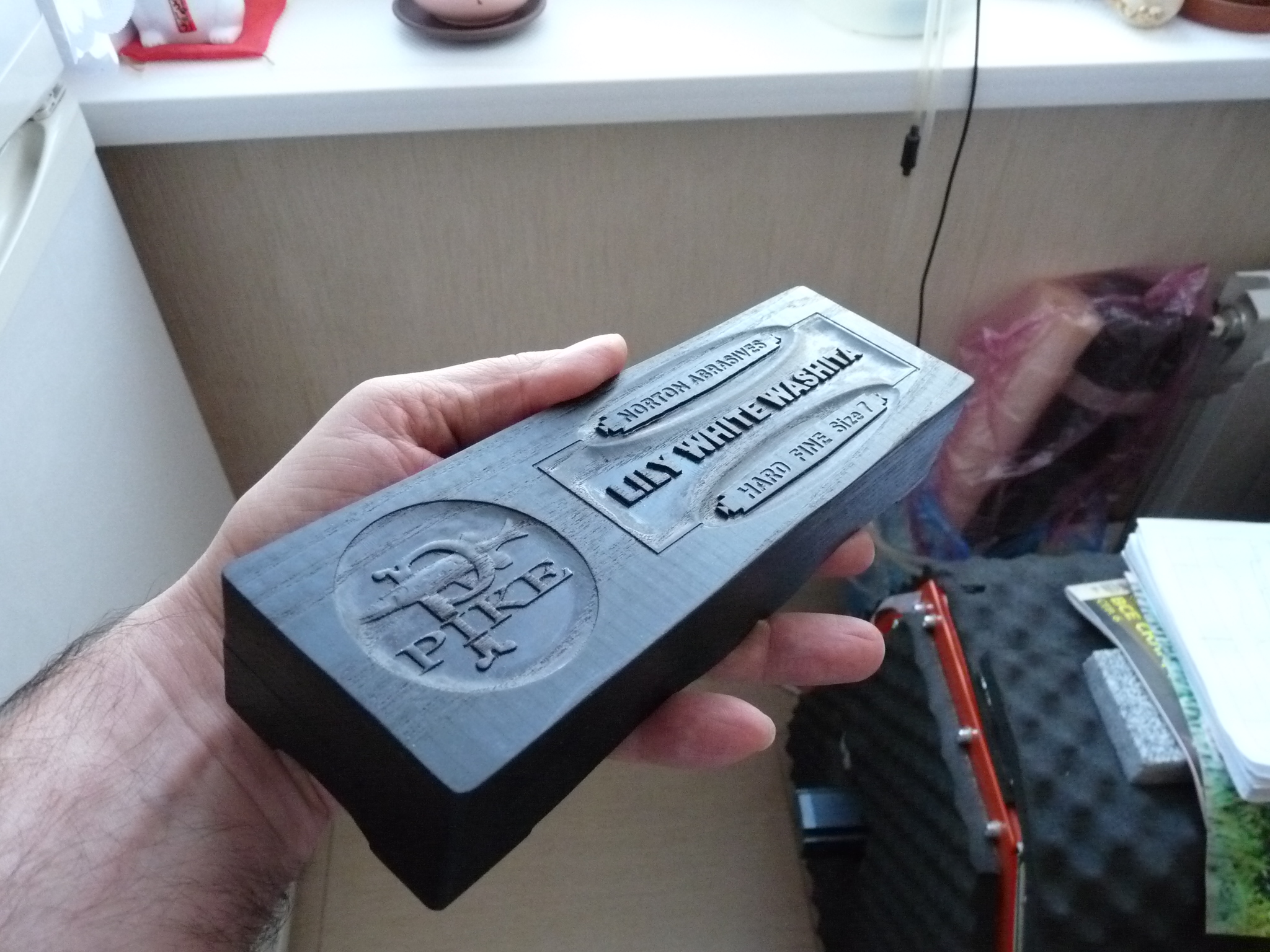 Вашитка здесь не есть Лилька Хард+Файн как написано, а более грызучая вещь, типа "Софт+Медиум" (и старая типовая по размерам - точно - из коробки развалившейся - 7"x2"x1", ибо тут просто модельку картинки "под Лили Вайт Вашита Хард Файн 7" утилизировал таким вот образом - тренировался).
