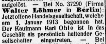 Торговая Компания Walter Löhmer начала работу в Берлине 1 января 1913 года, а