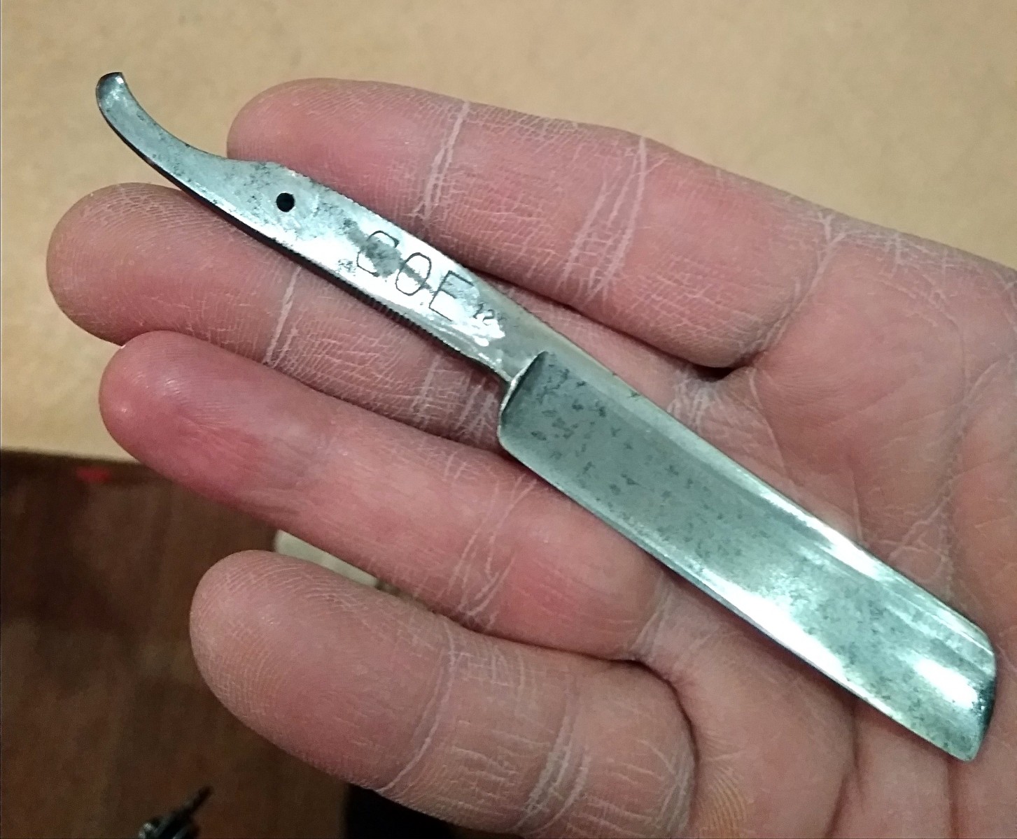 Не поможете определить бритву?Подарили ушатаный экземплярчик. Ручку из оргстекла в мусорку определил. Клинок почистил на грубую пока. Стало буковки нормально видно. Но вот знаний не хватает понять что за фрукт. Не поможете? Спасибо.