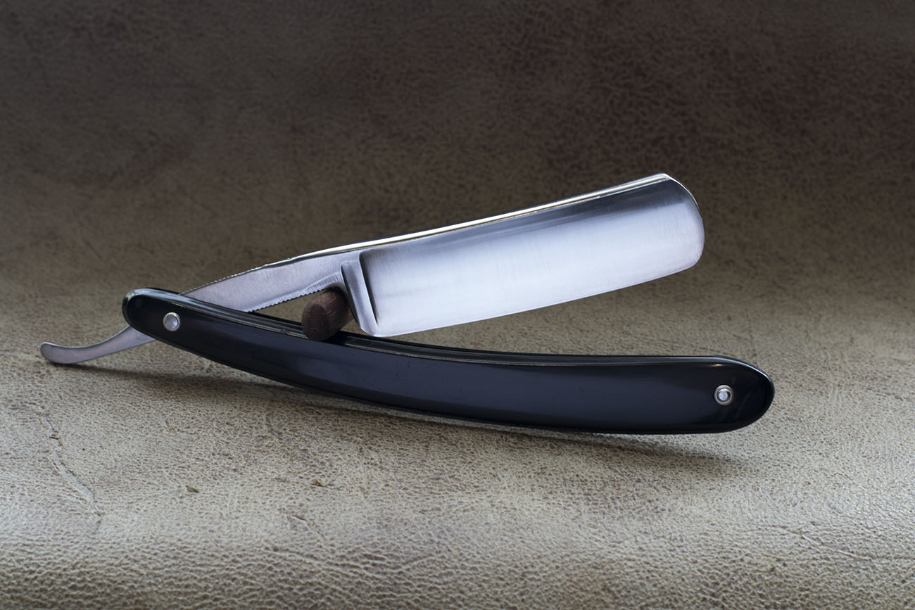 Бритва из Англии конца 19 века. Эбонитовая рукоять, вогнутость близкая к клину, парикмахерский вырез на полотне, ширина 5/8 (17 мм.) Джозеф Аллен основал свою компанию в середине 19 века, производил широкий ассортимент режущего инструмента, столовых приборов и опасных бритв. Данный экземпляр изготовлен из качественной шеффилдской углеродистой стали, имеет хорошую геометрию полотна и по ряду причин может быть порекомендован новичку в качестве первой бритвы, кроме того отлично подойдет для окантовки и регулярного бритья не слишком запущенной щетины. Бритва заточена и готова к бритью. Продано XLL Show