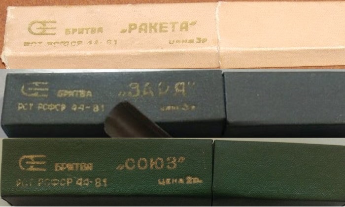 Правда, бритвы Москва найдены только выпуска после 1987 года, уже по новому ТУ. И чехол, похоже, из кожзама.