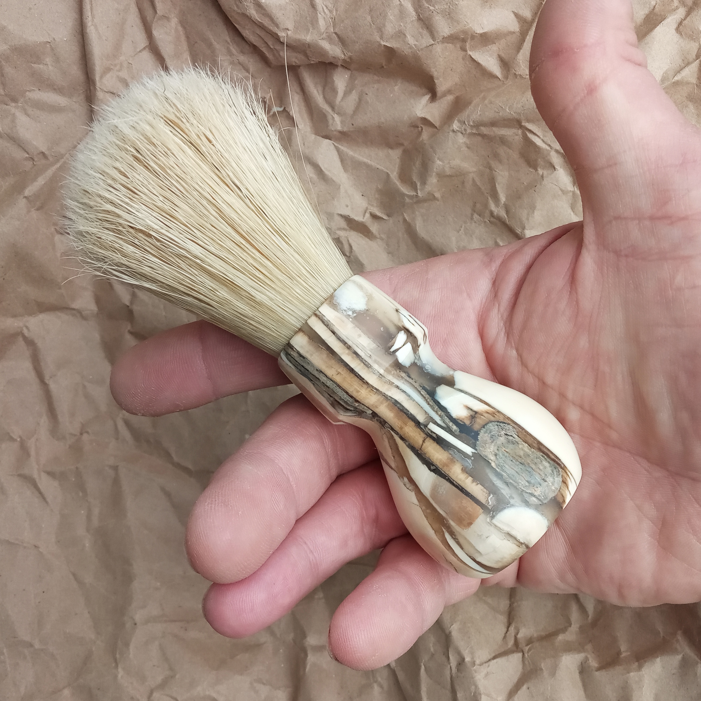 Самодельный помазокВот решил замострячить себе помазок. Кисточку барсука решил взять на али. А вот ручку решил выгрызть из мамонта). Работы ещё навалом. Но вот, так сказать, промежуточный результат.