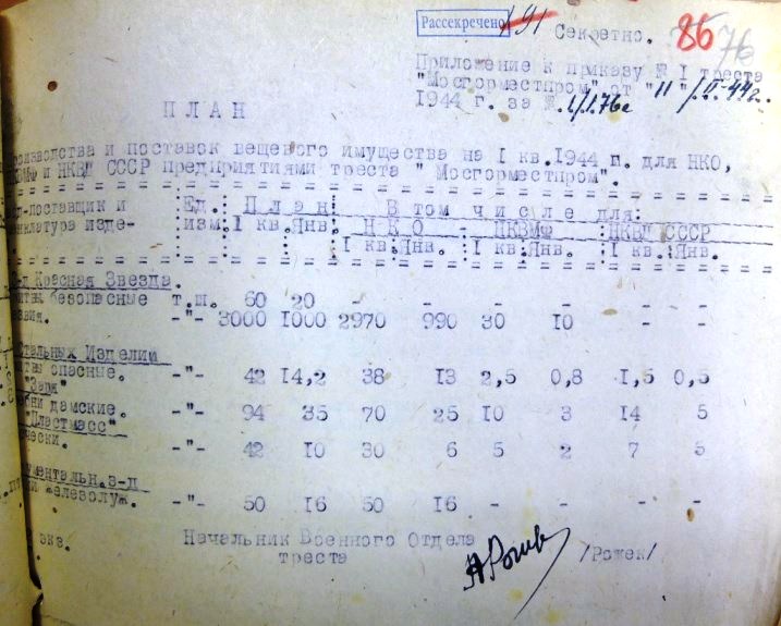 В таблице видно, сколько запланировано для НКО (Министерство Обороны, тогда Наркомат), Флота и НКВД.