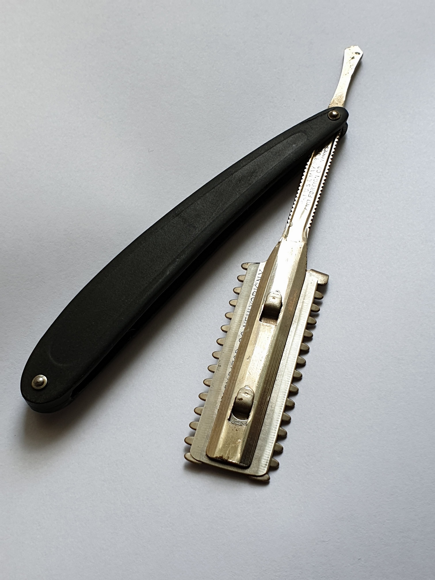 Опасная бритва со сменным лезвиемВау, сколько роюсь на барахолках, ни разу такой модели не видел, интересная). Но все таки, есть вероятность, что не серийка, может заводская, но для ограниченного круга