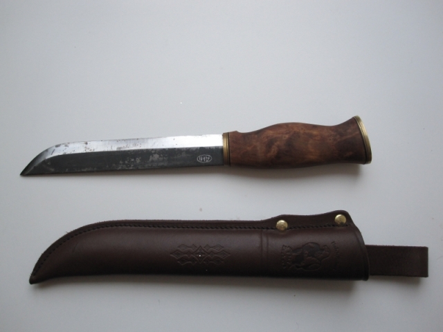 Re: Наши ножиОчень острый нож,но брать в руки неприятно,неудобная ручка.Охотник таким ножом отрезал себе палец,когда разделывал кабана,рука соскользнула и проехала по лезвию