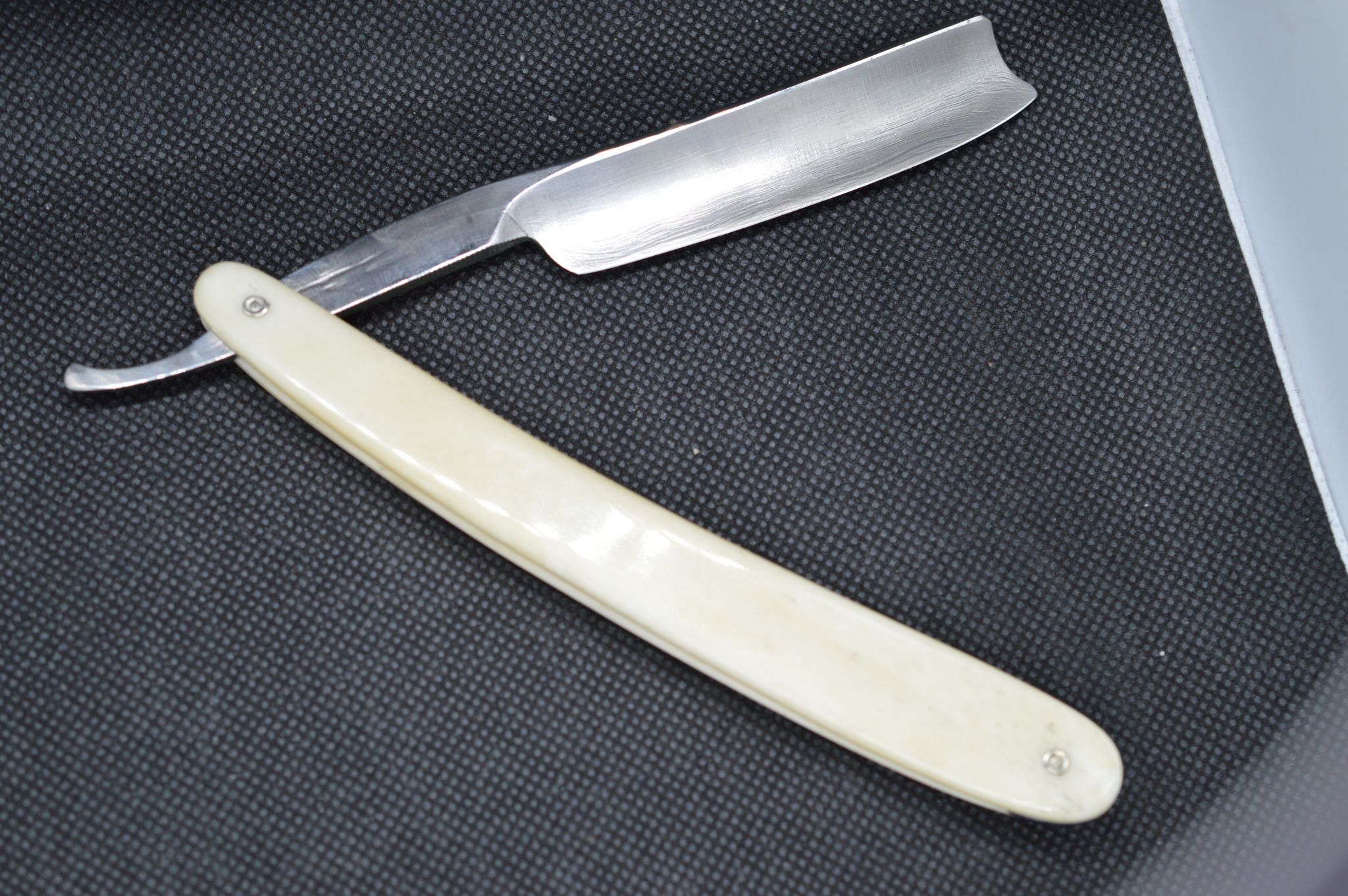 У некоторых моделей бритв эрль и хвостик закрыты целиковым куском слоновой кости. Большинство других производителей бритв обычно приделывали пластину слоновой кости к каждой стороне эрля и хвостовика. При взгляде на бритву сверху были видны щели между слоями слоновой кости и металла. Шестьдесят лет спустя современные коллекционеры замечают в этих щелях уродливые пятна ржавчины. В варианте Хенкельс видно, что в целиковом куске слоновой кости пропилен желоб, в который точно входят эрль и хвостовик. Обычно металлическая часть заканчивается сразу за заклёпкой, хвостик же остаётся почти полностью из слоновой кости. При взгляде сверху и сбоку можно увидеть только слоновую кость. «Сэндвич» из металла, облачённого в слоновую кость можно обнаружить только при взгляде снизу.