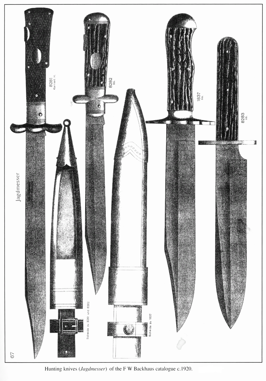 Брэнды: STERN (1895 год пат. No.1078l), RASY (1895 год пат. No.1 1799), Rasy J .W.Kullen, Fama. Торговые марки: крест под звездой (1897 год пат. No.25920), ребёнок на спине аиста (1903 год пат. No.64266), скрещённые кисти (No. 162673), автомобильные шины (1919 год пат. No.214435), стоящий ковбой или гаучо под El Charro , ковбой над El Charrito (young cowboy), крылатые бутылки с Cuauhtemoc. RZM код военного времени: M7/44. Основана в 1827 году Friedrich Wilhem Backhaus. Он же зарегистрировал первые торговые марки Stern, Jahr, Klein and Clein 14-го декабря 1854 года. Четыре марки были позже перерегистрированы 27 апреля 1875 года сыном основателя Robert Backhaus, его братом Friedrich Wilhelm, его сестрой Julie и фабрикантом Benjamin Graef. Боевые ножи хорошего качества производились во время войны 1914-18 годов. Использовалась ТМ в две линии - вверху FW Backhaus , внизу Ohligs-Solingen (DK/55-9). В почтовых каталогах Третьего рейха 1925 года фирма записана как произодитель ножевых товаров, ножниц и походных-, арканзасских-*, Saladero*- ножей. В течение Третьего рейхафирма изготавливала SA (штурмовые) кинжалы (EN/186), NSKK (Национал Социалистический Транспортный корпус) кинжалов (WMO/16/225), SS кинжалов (KS/3.6.81/458) и HJ (ГитлерЮгенд) ножей (FH51/B27). Ранние кинжалы маркировались "овалом с маркировкой мальчик на аисте". Прим. * Арканзасская зубочистка — боевой нож гигантских размеров, обоюдоострый с длинным треугольным лезвием , носимый за спиной по диагонали (Северная Америка). * Saladero - центрально- южноамериканская тема, подробности мне неизвестны. Ремонт опасных бритв, звонить с 11-00 до 23-00, +79267729357, (viber, whats app, telegram, VK), спросить Олега.