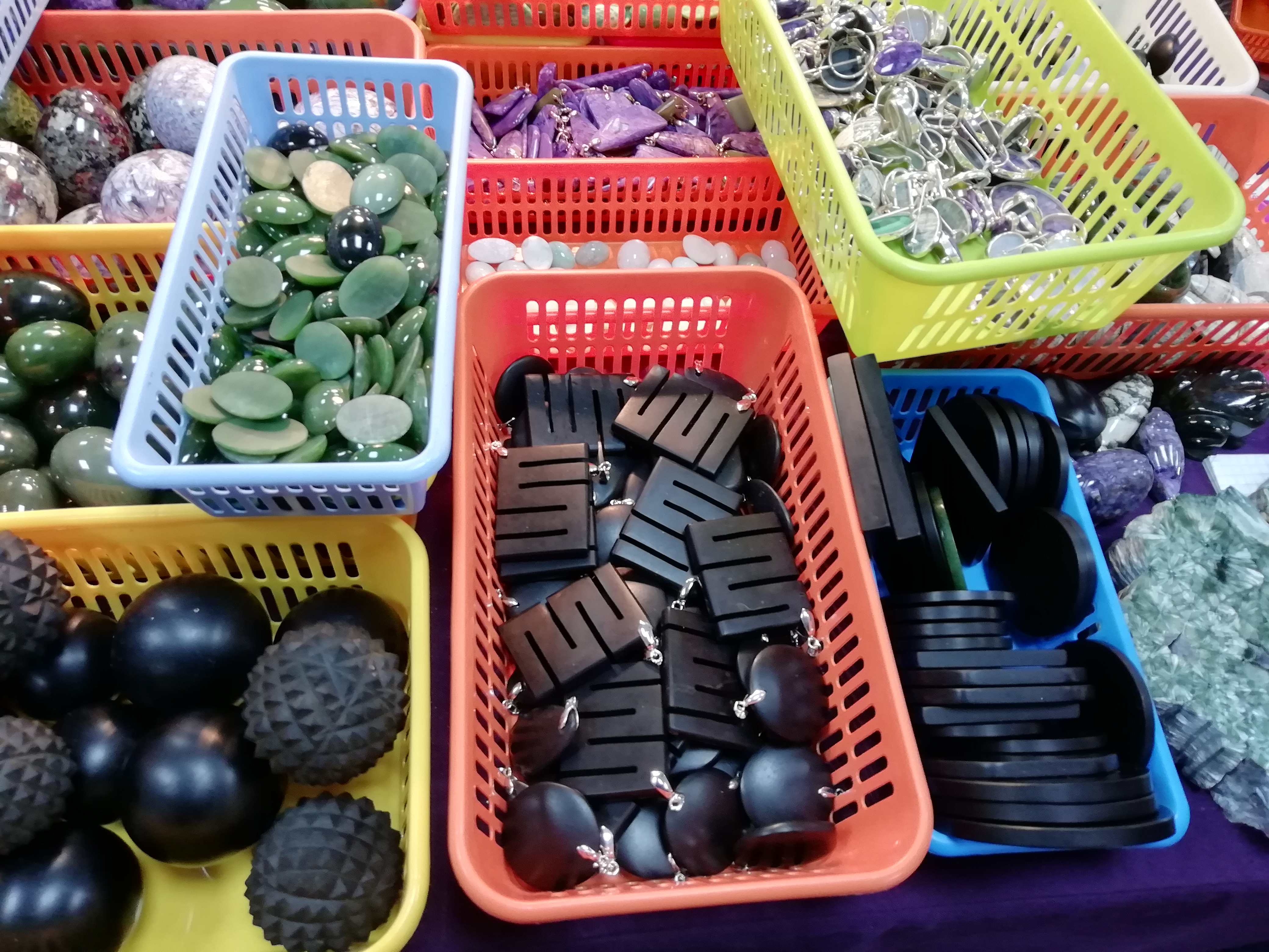Полируют по-разному, наши в "блеск" не полируют, в основном. Или сорт такой идёт. Но те же армяне, грузины, чехи - более блестяще доводят. Ну судя по словам нашего изготовителя - это только 2мкм алмазом он доводит фигурки, далее не утруждается. Мне там ещё мужики другие говорили технологию - как доводить - с алмазами, углём каким-то на оргалите - чотто такое, но после "оргалита" я слушал менее внимательно. Сунули пригласительный на март, нахаляву Во, на обратной стороне написан календарь выставок - ежемесячно в 2019г.!!! Выставке - 25 лет. PS Ну то, что написал выше - это только со слов иркутян - я не пробивал в инете правду, может они в чём то ошибаются... даже уверен в этом по некоторым высказываниям. По ценам - плашка 100х100х10 стоит 700руб (вниз не упал, был не хозяин), маленькие овалы, круги, квадраты - до 75х75х5... 75х50х5 типа 300...500р у производителя! У прочих это уже может быть и 1тыр! Малые кулончики-висюльки - 200...250р Плаха типа 120х130х50 с охряпанным краем - 3000р Шарики - 500...700 руб d50 А были ещё всякие типа с мелкими шипиками, типа массажные - а интересный эффект!