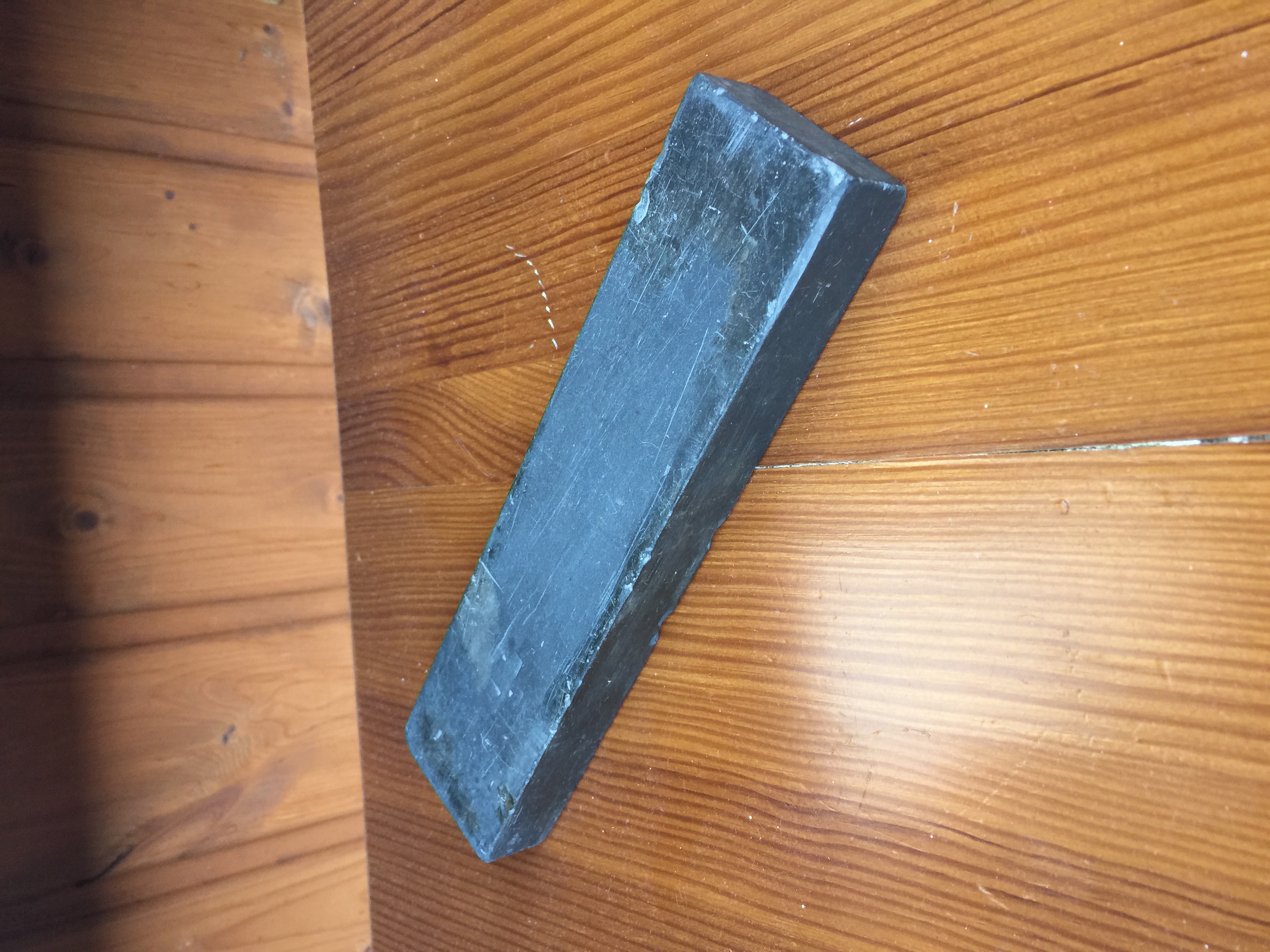 Помогите определить каменьЯ имел в виду цвет от угольно-черного до цвета простого карандаша. Что то среднее. Фото торцов ничего не даст. Их тоже использовали. По цвету однородный. Пробовал еще им довести бритву. В микроскоп полирует риски, параллельно оставляя довольно заметные свои риски. Видимо не однородный. Какие надо сделать доп. фото? Я добавлю, но камера у меня не ахти какая. Кстати, некоторые фото по ссылке действительно очень напоминают мой камень.