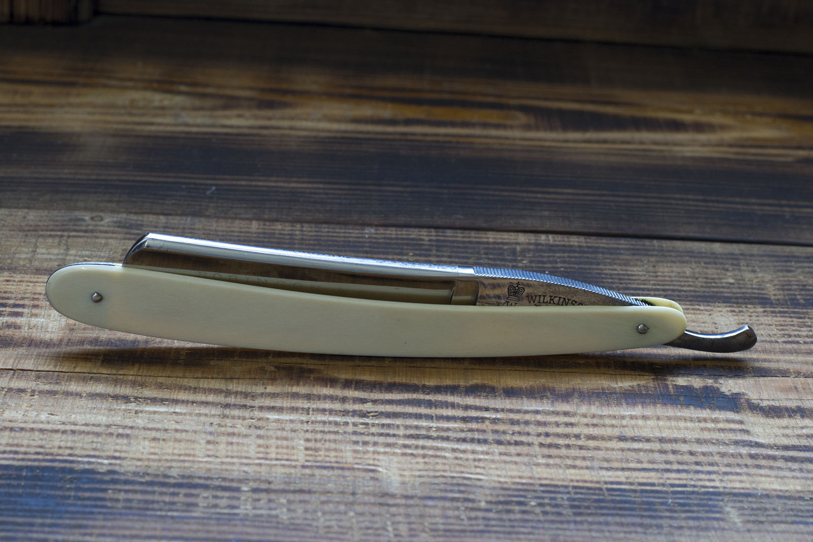 Бритва из недельного набора от одного из известнейших производителей оружия и режущего инструмента Wilkinson Sword.Фирма старая и поначалу род ее деятельности с бритвами не имел ничего общего, даже эти бритвы были произведены каким то сторонним предприятием в Германии, хотя встречал упоминания о том, что производство этих бритв все же было в собственности Wilkinson, но расположено на территории Германии. Полотно с полной вогнутостью, ширина 19 мм, состояние почти новой бритвы, исключая небольшое окисление эрля. Рукоять бритвы выполнена из слоновой кости, на полотне травление дилера из Сингапура, для продажи в магазине которого и предназначался данный набор. Редкая и очень красивая вещь. Заточена и готова к бритью, рекомендую новичкам. Продано W Show