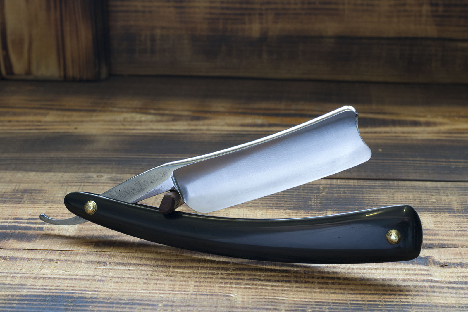 Опасная бритва от Джозефа Востенхольма торговой марки Ebro. Бритва имеет довольно скромные размеры в 5/8 (16.6 мм.), вогнутость полотна примерно 1/2, роговая рукоять, немного длинная, но я уверен что родная, так как не было замечено каких либо следов перестановки - оба пина были одинаковыми, аутентичные латунные шайбы, которые удалось сохранить. Бритва точилась мало и аккуратно, поэтому размер полотна близок к оригинальному. На эрле присутствует клеймо England, что может смутить любителей датировки бритв по Standart Guide, несмотря на его наличие я уверен что бритва выпущена ранее 1890-х, а именно дата выпуска примерно 1860 - 70 гг, об этом говорит и период работы фабрики, и форма полотна в сочетании с материалом рукояти. Бритва имеет прекрасную геометрию - фаска тонкая и равномерная по всей длине, углеродистая сталь высокого качества хорошо проявившая себя в заточке. Бритва крайне интересна, особенно рекомендую новичкам, так же будет удобна при окантовке. Продано EBRO Show