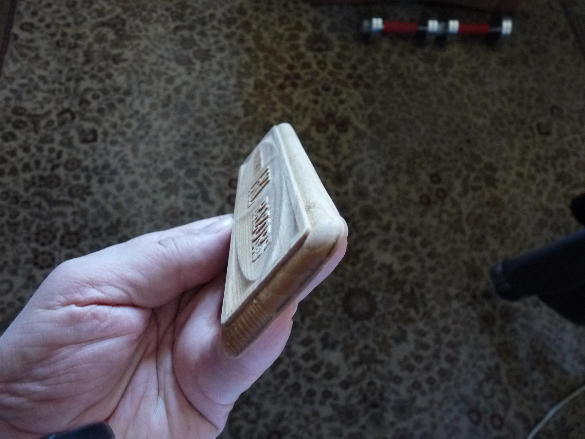 Из тем про Востенхольма. И тогда немного самокритики - не совсем понравился термоясень всё-таки как материал для тонких работ (но например в качестве футляра для камня - зачёт полный) , так как выходы годовых колец довольно пористые (именно на термоясене, на просто ясене - нормально) и как их закрыть для последующей отделки лаком, например, непонятно - впитывается лак до условной бесконечности... а если закрыть их чем то иным (порозакрывающим), то не факт, что нормально ляжет и не облезет уже тот же лак сверху этого радикального. Воск то лёг туда, и закрыл, но он получается немного белесый. Если нагреть поверхность, например феном, то белесость жилок уходит, но... в общем есть такой грех... впрочем это всё-таки не очень большой грех, наверное...