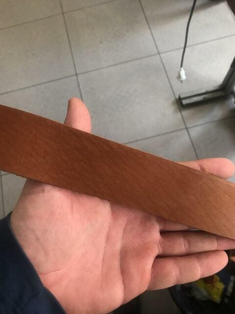 Изготовление ремней для правкиВзял буйволиную растишку от Мони. Вырезал полосу 600х60х2мм. Вышкурил 180-2000. Покрыл костным маслом. Прилепил фурнитуру. Работает. Не могу сравнить с канаямой, т.к. нету.